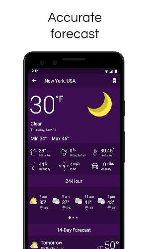 提供多种天气预报类型,包括日出日落和天数、紫外的强度等。