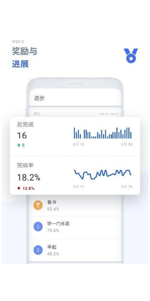 您可以查看每天、每周、每月、每年的习惯情况,并且可以通过图表直观了解您在工作中的进步。