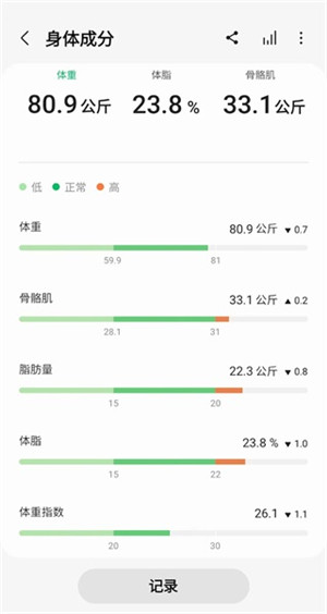 (1)健康评估(测量):您可以用三星智能手环对自身的体温和体重进行综合评估,并且实时更新,从而更好地控制肌肉含量、降低疾病风险。