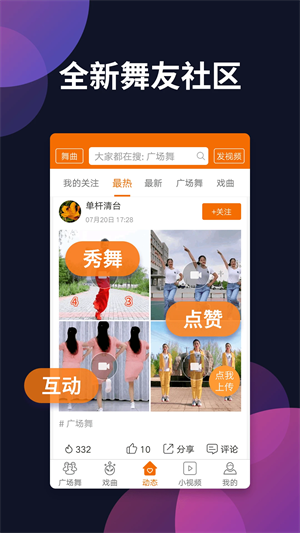 用户可以将自己喜欢的舞蹈创作成视频上传至社区上,吸引更多的粉丝关注。这种形式使得用户之间的互动更加生动有趣,同时也增加了艺术的传播力和乐观性。