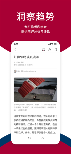 联合早报即时新闻报道APP,一款专业的手机在线阅读软件,在这里可以为用户提供最新最全面的新闻资讯、热点视频等内容服务。同时,用户们可以在联合早报及时知道国内外时事热点事件动态变化情况和重大事件发生消息!