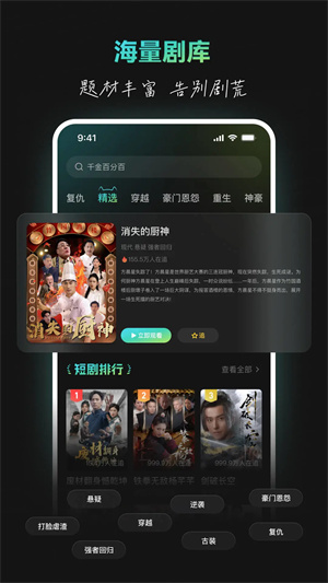 这款软件内置了大量的短剧频道任你挑选免费观看且画质非常清晰,带给用户更好的视觉盛宴。无论是动作片还是科幻片,都可以在这里获得极佳的观赏体验。