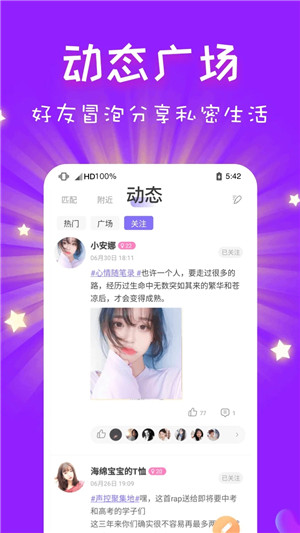 ●语音连麦畅聊,实时视频通话、语音聊天、点歌唱响、在线互动,让你在茫然的房间里也能快速脱单
