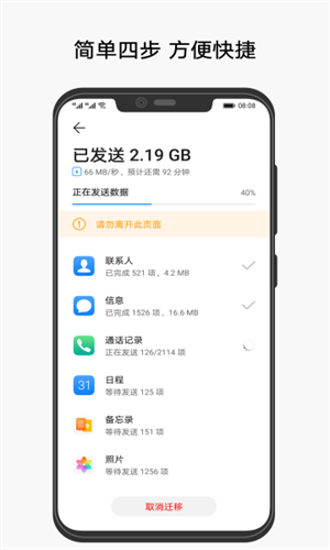 华为手机克隆数据转移软件是款专为华为设备打造的文件传输工具,支持一键将旧手机中的数据资料快速备份到云端空间当中进行保存使用,操作简单易上手,安全可靠不耗流量非常实用,功能强悍且免费!欢迎喜欢的朋友下载!