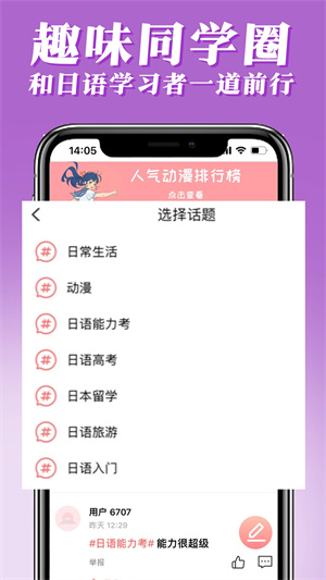 拥有来自985/211高校的专业日语老师及知名大学、新编动漫、日剧、动画、音乐、纪录片,涵盖从零基础到高级日语初学者的各个阶段,包含常用口语、日语高考日语、日语N1日语、JLPT考试日语、能力考级、高考日语等各类日文应有尽有;更有趣味闯关式学日语、寓言故事、趣味问答等丰富内容,让您在轻松愉快的环境中高效学完单个词汇;通过趣味闯关游戏,让单词记忆更牢固;还有专业老师实时直播互动辅导,随时随地的帮您解决学习过程中遇到的问题。