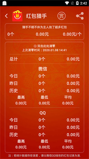 2、进入软件首页即可看到如下图所示的内容:抢红包、抢红包记录等等。