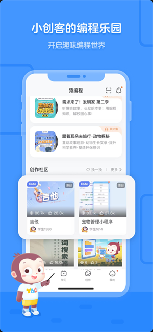 猿编程平板端是为儿童打造的一款编程学习软件,拥有丰富的教学课程和视频内容可以随时在线进行体验。趣味性的教育方式能够激发孩子的兴趣爱好!有需要的用户欢迎在绿色资源网下载使用。