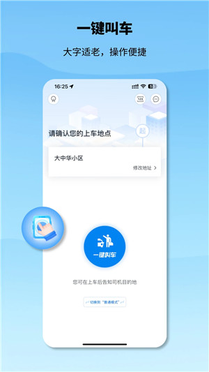 “一键叫车”:乘客只需要输入目的地和出发日期即可快速完成约车;
