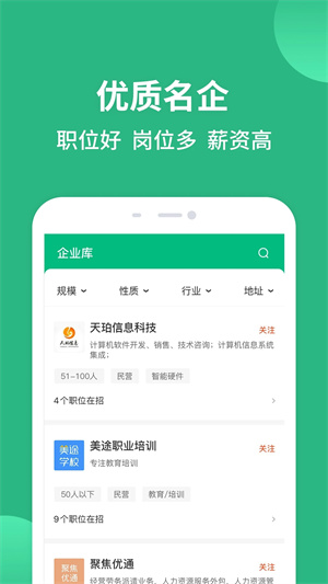 智能算法根据个人需求为您推送符合心意的职位内容!