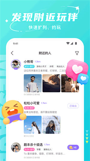 根据你的爱好智能推荐最适合你的人选房间,实时语聊畅玩游戏;