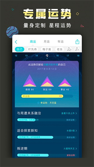 测算星座APP是一款集运程预测、爱情配对、事业分析、人际关系分析、个人魅力等多个方面为一体的综合性平台。