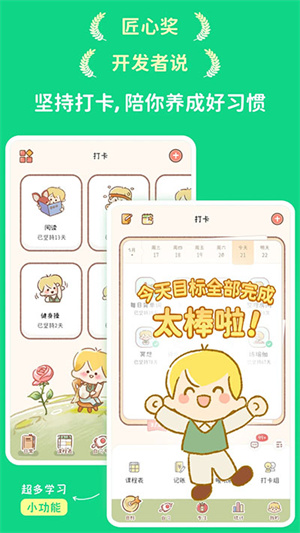 今天就是我们一起进步啦~-―• ◆ 日历表格:每日提醒,清晰分类,不忘记每个美好时刻;日签到:周周目标管理,让您轻松打卡;每日一签:养成良好的生活习惯,养成好习惯,培养良好作息时间,告别拖延症;日程安排:自定义闹钟和重复日期等多种实用工具让你在日常生活中更加便捷高效!